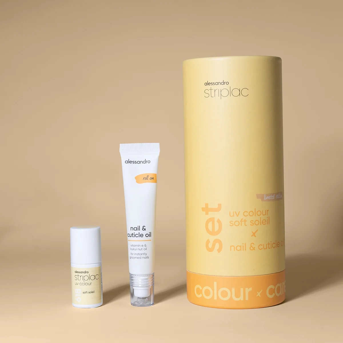 Der limitierte Striplac uv colour in dem soften Buttergelb-Ton Soft Soleil wird in diesem Set perfekt ergänzt durch das Nail & Cuticle Oil, das Nägel und Nagelhaut intensiv pflegt.